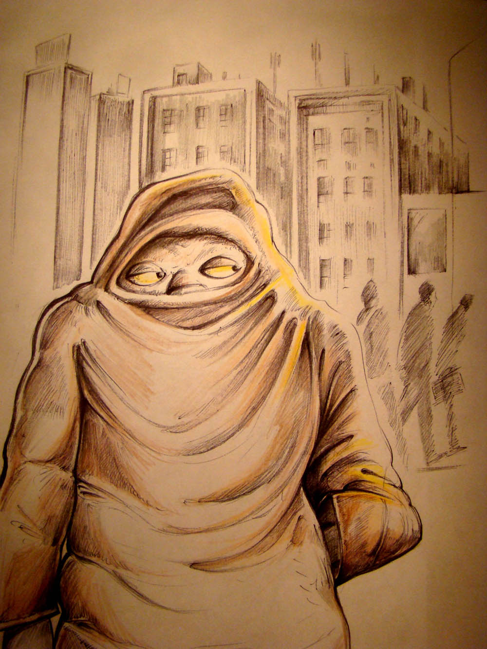 une ville, un personnage etrange rode , il a une apparence d'humain et